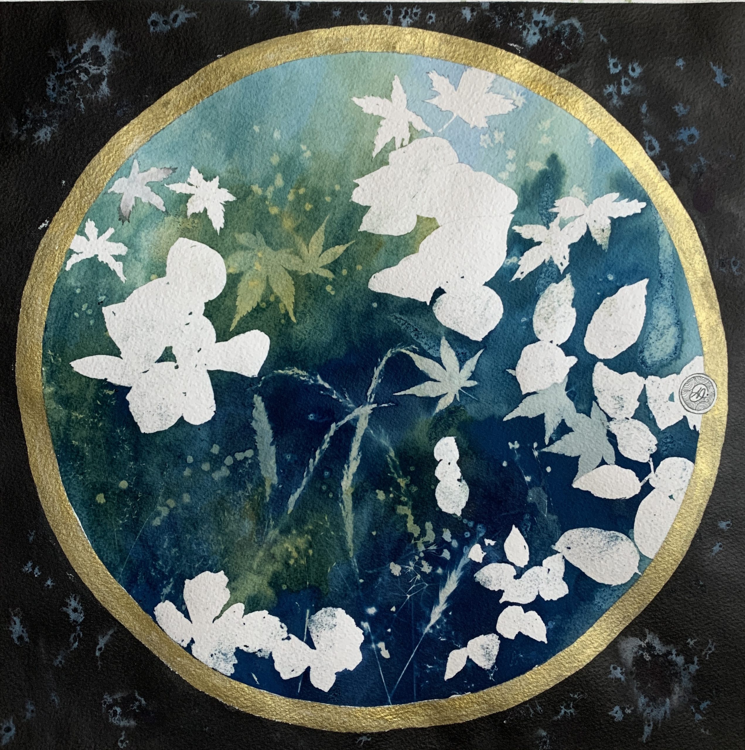 Aquarelle et Cyanotype sur Papier Arches 300 g/m2Dimensions : 39 cm (L) x 39 cm (H)