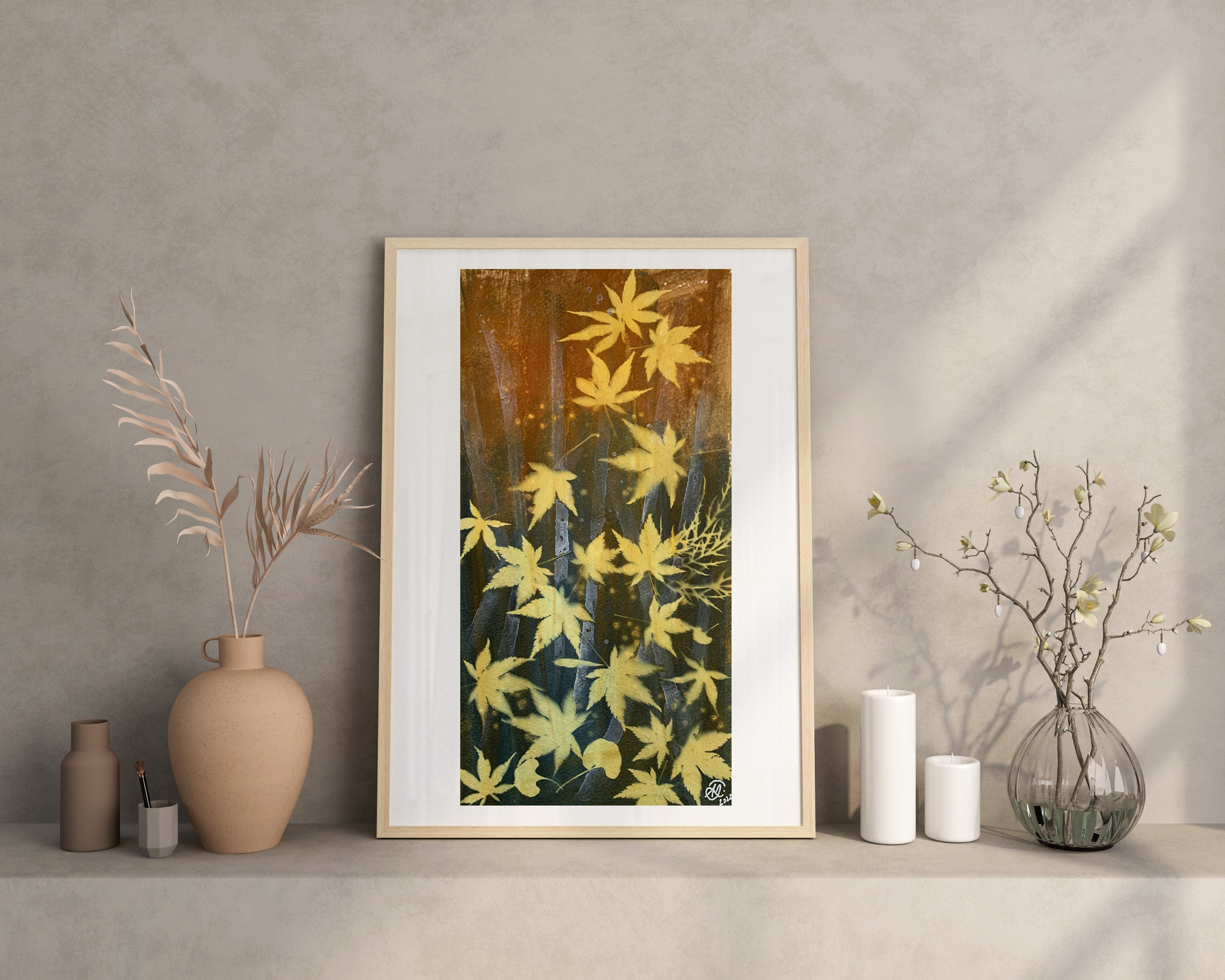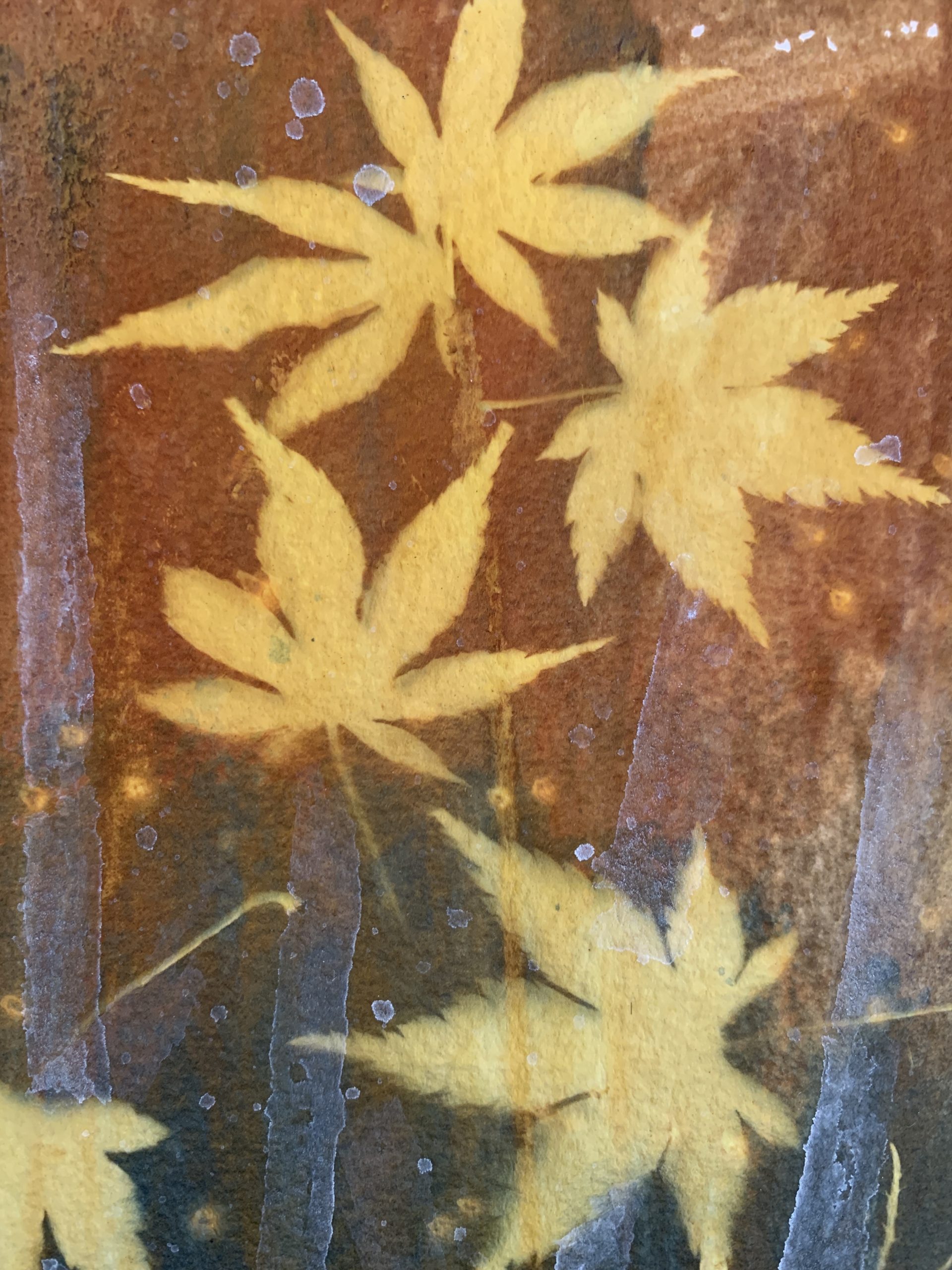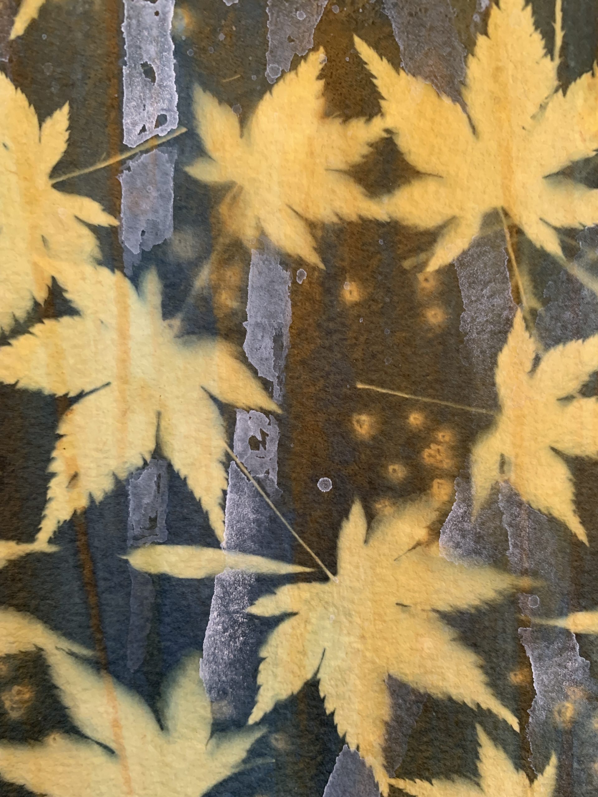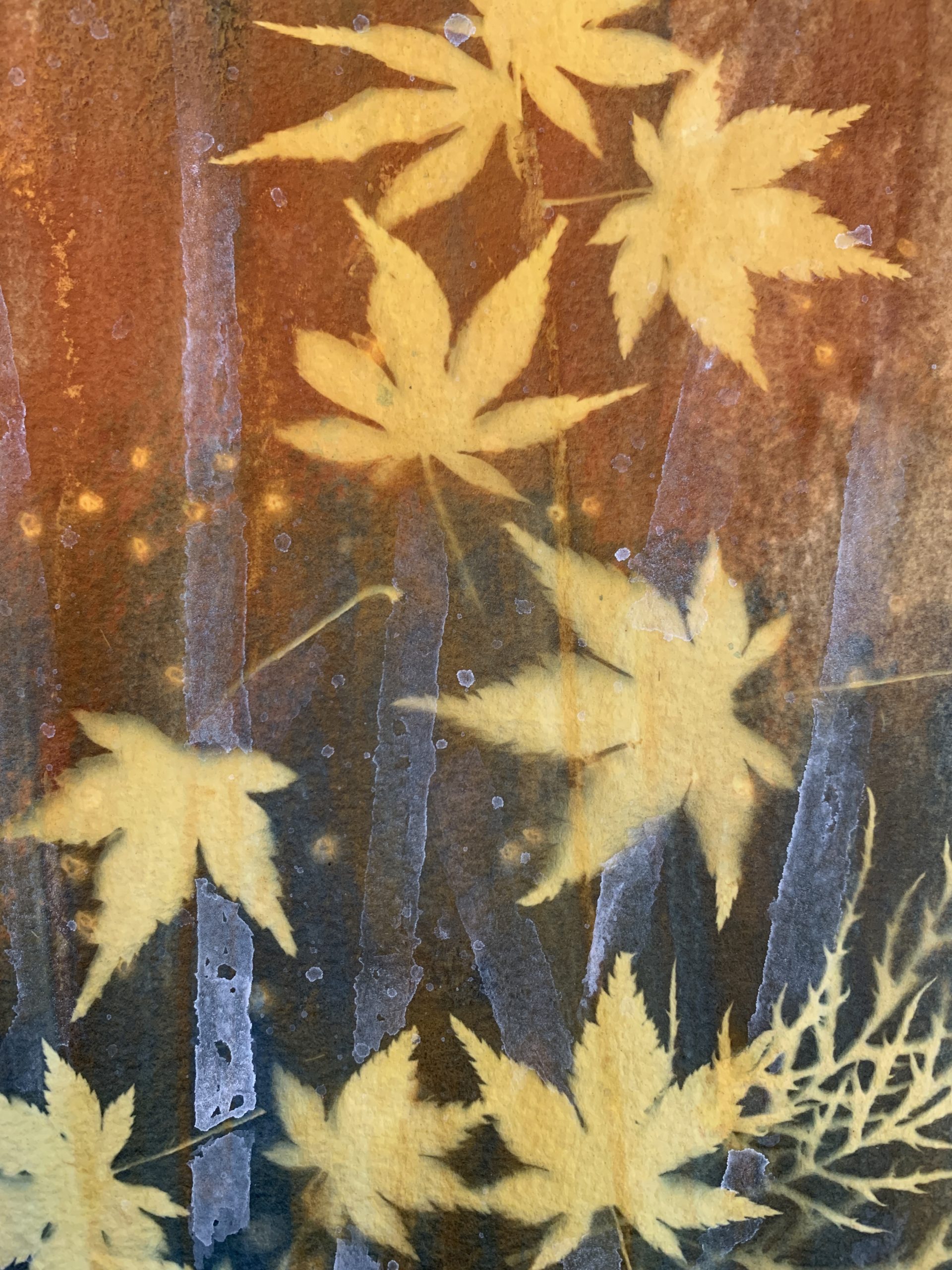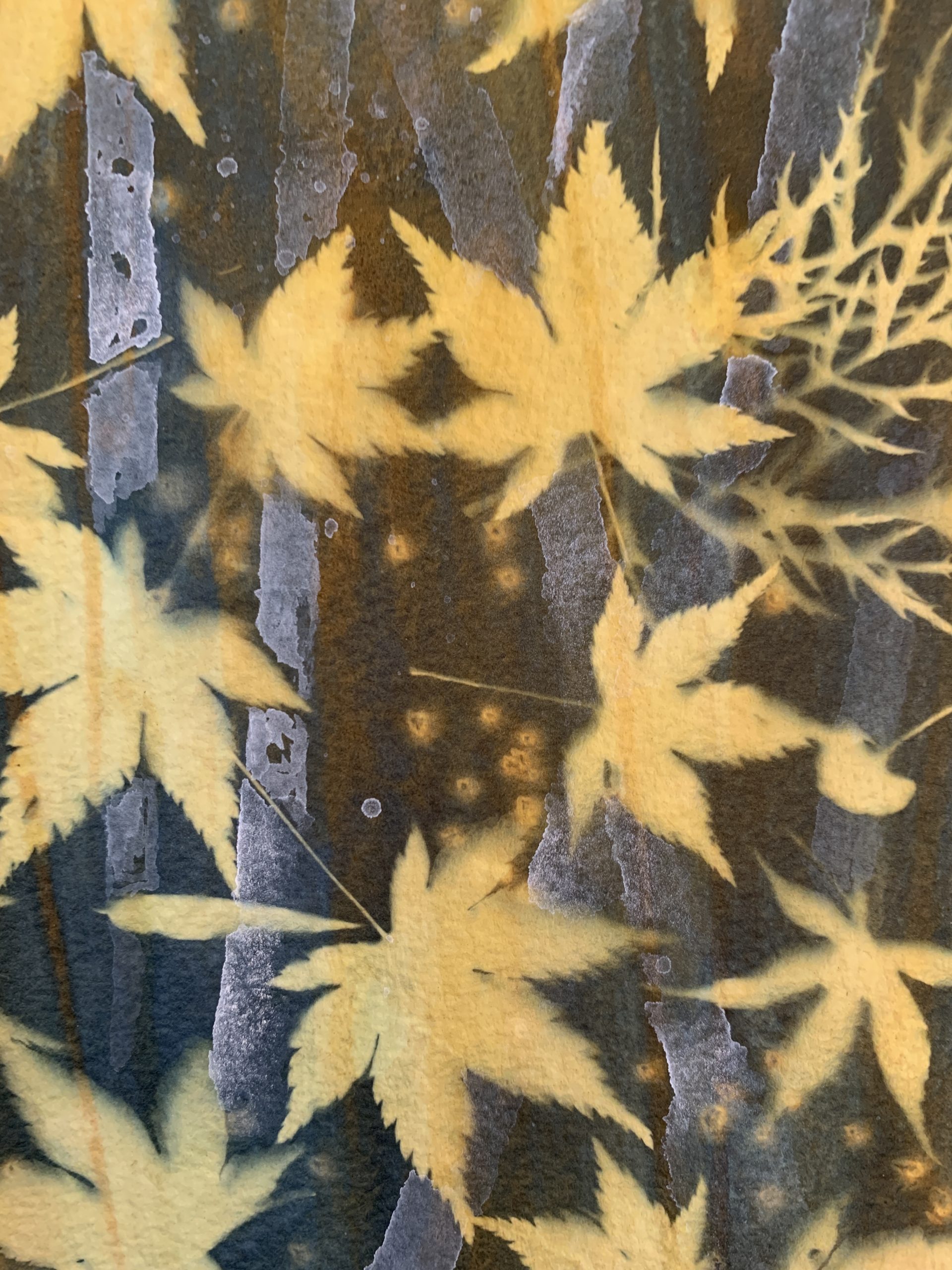 Oeuvre Originale « Pluie d’Or » : Cyanotype, aquarelle et gouache, oeuvre originale signée et livrée avec un certificat d’authenticité.